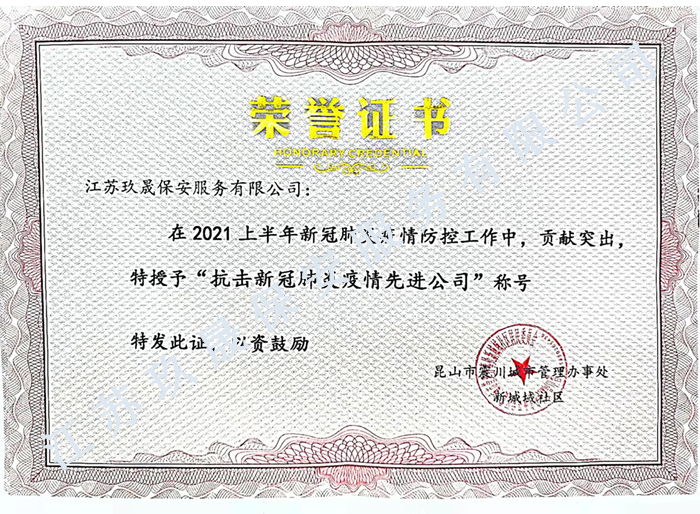 • 我們19年開始和昆山玖晟保安公司合作,合作一直很愉快,尤其這次疫情期間,玖晟保安有條不紊的為我們守住園區的安全。好樣的。 ---帝浦拓** 2020-05-11
